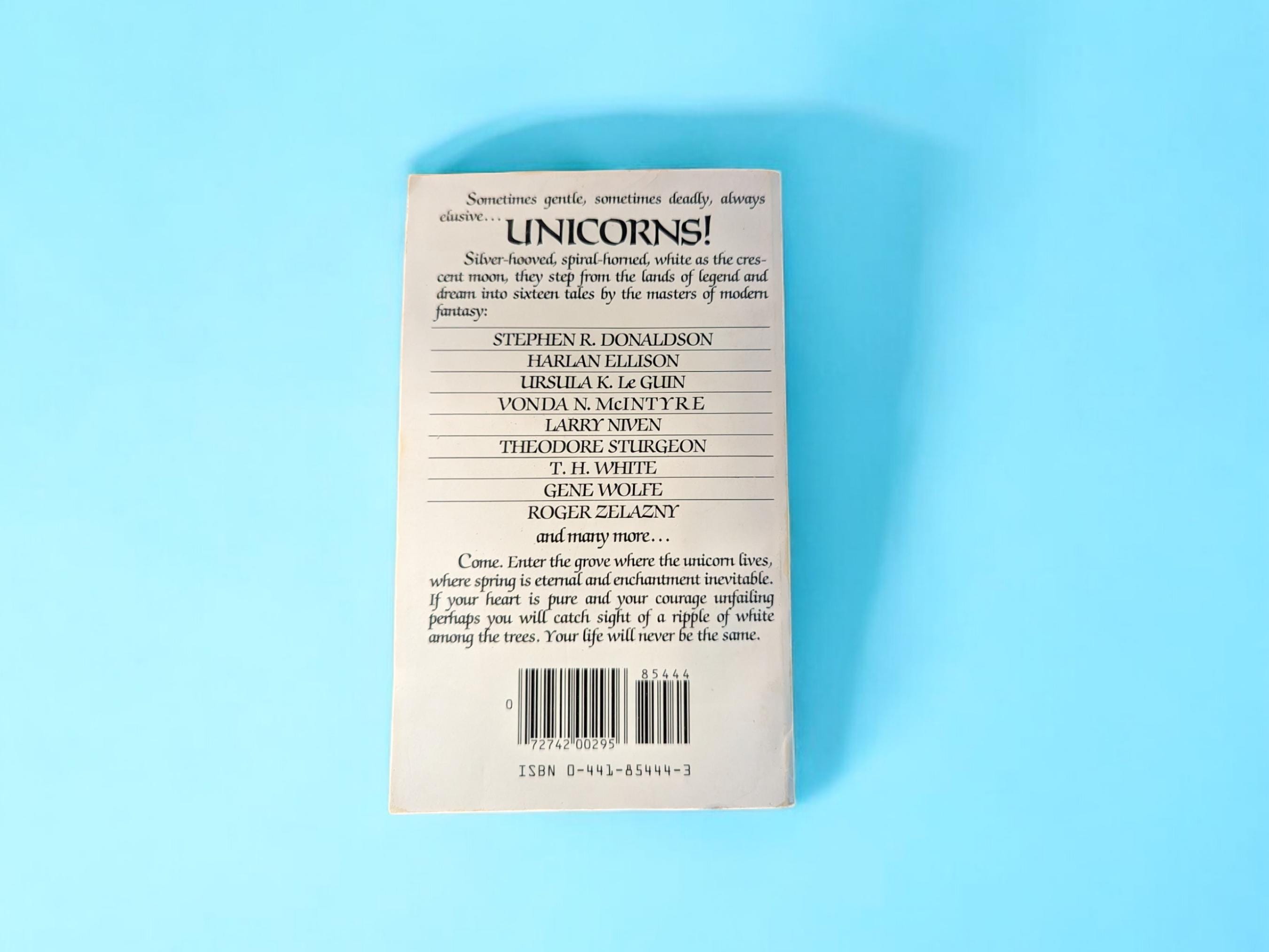 Sometimes gentle, sometimes deadly, always elusive...Unicorns! Silver-hooved, spiral-horned, and white as the crescent moon, they step from the lands of legend and dream into sixteen tales by the masters of modern fantasy! This collection of stories features authors such as Ursula LeGuin, Roger Zelazny, Harlan Ellison, Larry Niven, and many more! 16 Stories in total.